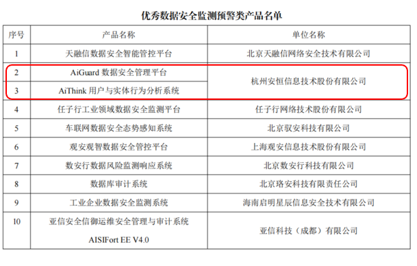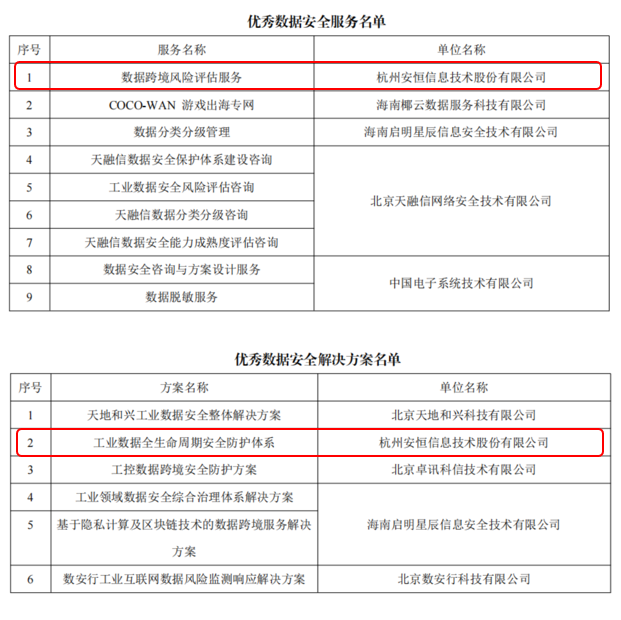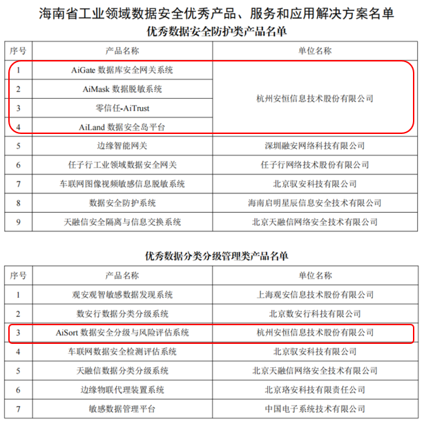 唯一!海南省這項評選,安恒信息數據安全實力入選全部名單