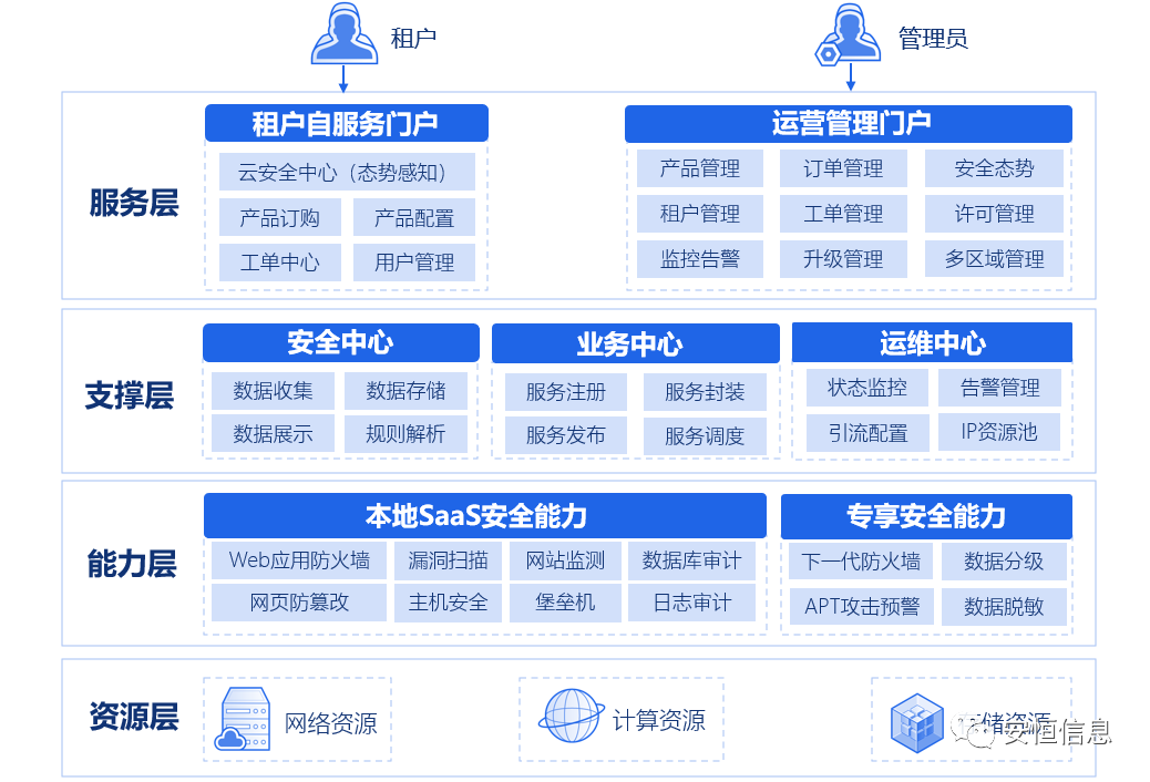 安恒云-天池云安全管理平臺是安全資源池類產品,面向多云、私有云場景,利用虛擬化技術,集成檢測類、防護類、審計類、數據安全類等20余種安全能力,為用戶提供一站式云安全解決方案。