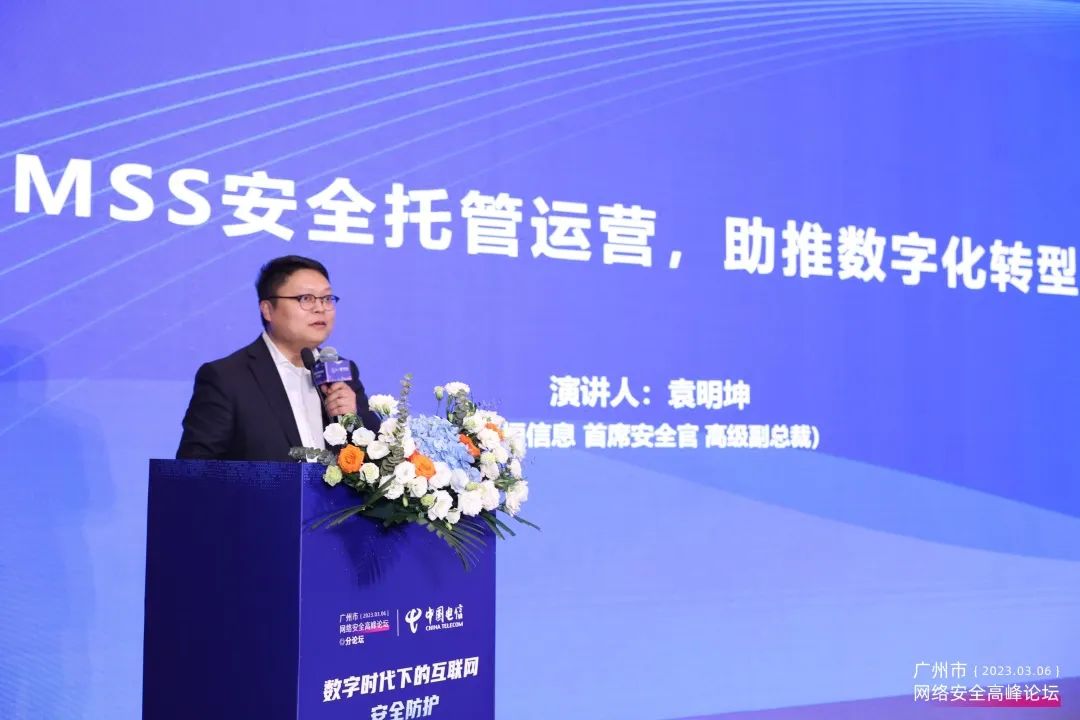 在主題為“數字時代下的互聯網安全防護”的分論壇上,安恒信息首席安全官、高級副總裁袁明坤發表《MSS安全托管運營,助推數字化轉型》主題演講。他表示,在數字化轉型背景下,結合安全建設面臨困境和安全需求分析可知,資產、漏洞、威脅、管理是網絡安全面臨的四大難題。安恒信息提供云化安全托管運營服務和本地安全托管運營服務,全面滿足不同規模、不同需求、不同業務發展階段的運營需求。