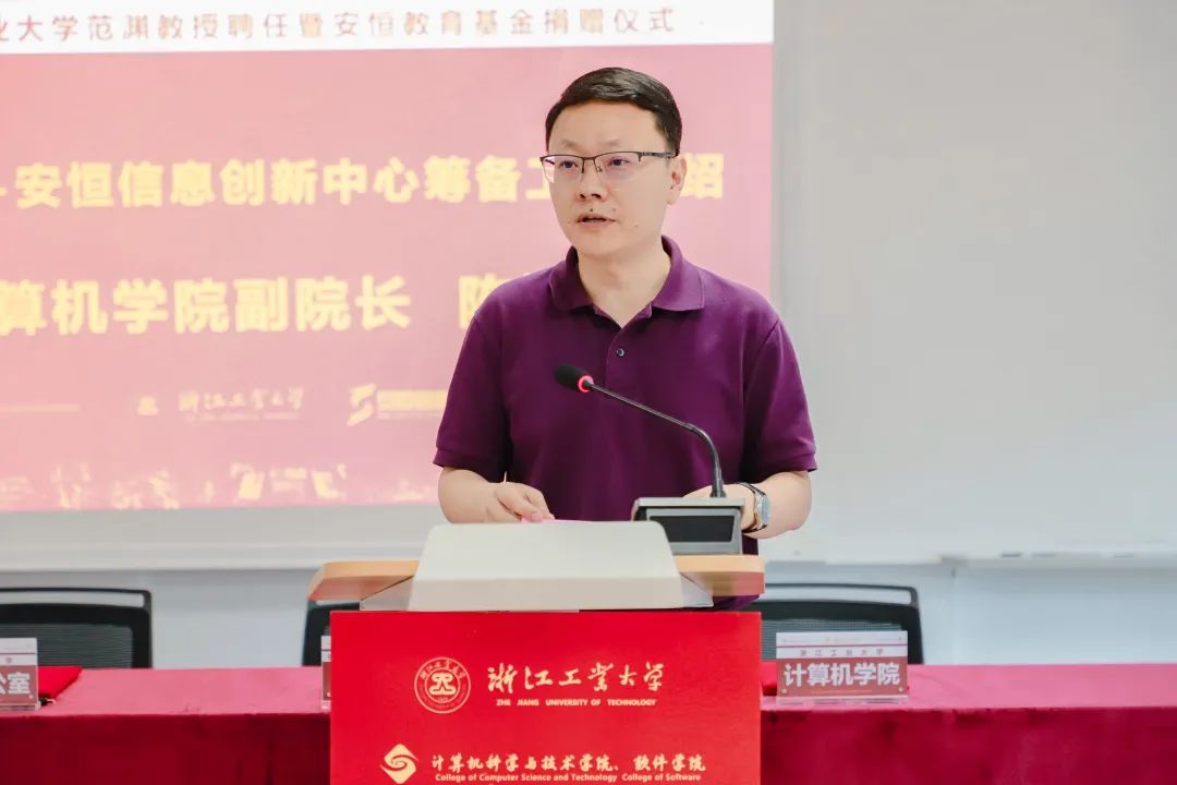 計算機科學與技術學院、軟件學院陳鐵明副院長介紹了浙工大-安恒信息創新中心的籌備工作。