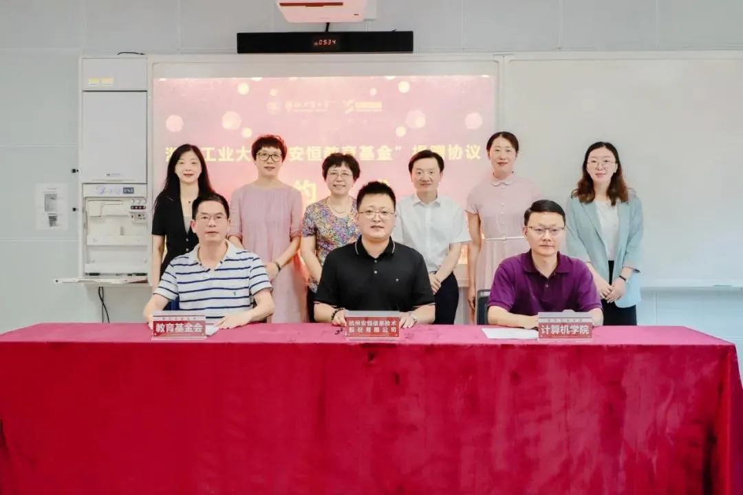 聘任儀式后,雙方領導及代表共同商討了杭州安恒公益基金會與浙江工業大學合作的相關事宜,舉行了“安恒教育基金”捐贈協議簽約儀式。杭州安恒公益基金會設立“安恒教育基金”,未來將對浙江工業大學優秀學子和貧困學子提供資助和支持。