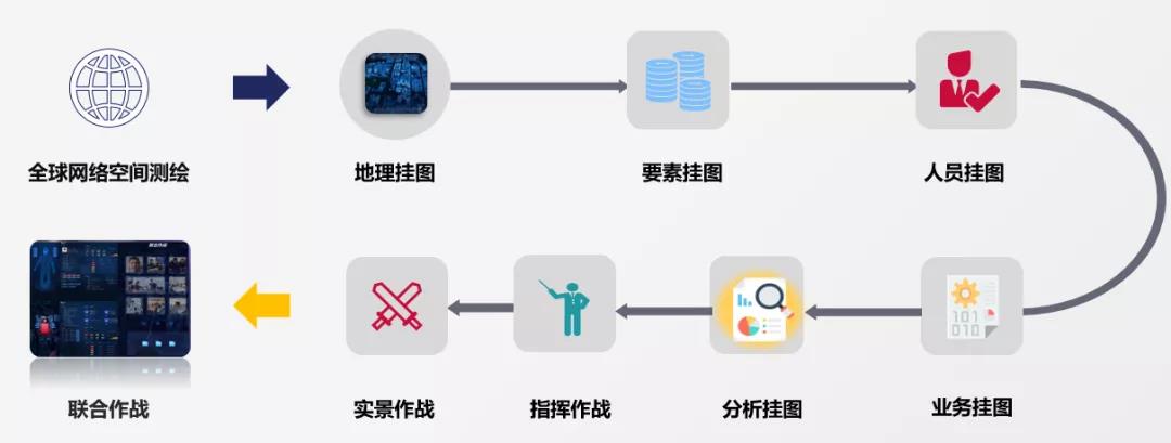 掛圖作戰(zhàn)以地理空間可視化為樣本,融入網(wǎng)絡空間要素和網(wǎng)絡安全事件,從要素、關(guān)系、事件、業(yè)務等維度豐富可視化表達內(nèi)容,繪制網(wǎng)絡空間地圖,實現(xiàn)網(wǎng)絡空間各類事件全過程展示,實現(xiàn)網(wǎng)絡空間的具象化與數(shù)字化。