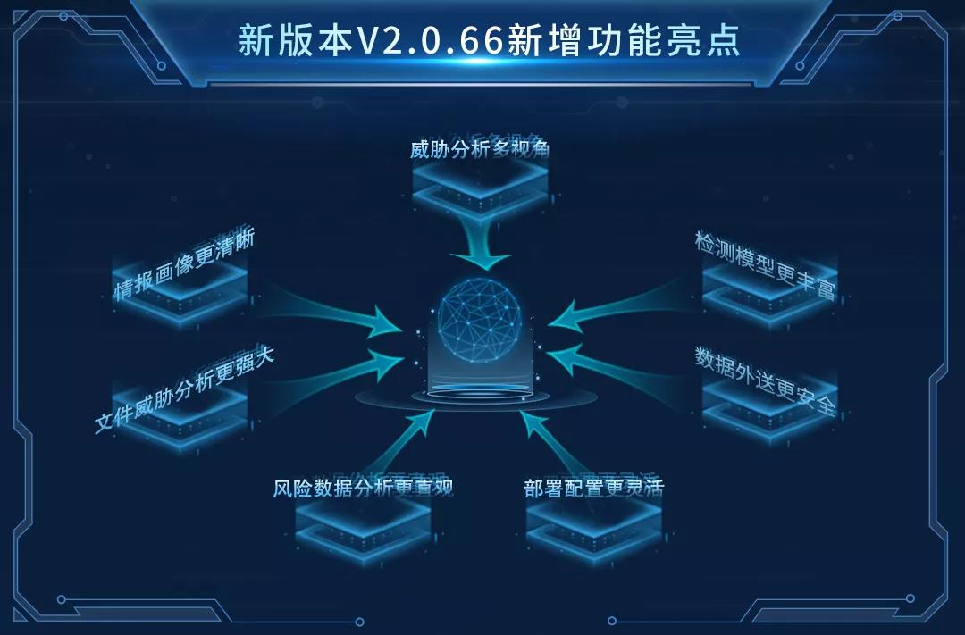 新版本完成了七大板塊優(yōu)化,顯著提升了多視角威脅分析、情報畫像、文件威脅檢測、風險數據分析、檢測模型、數據傳輸安全、分布式部署等能力,整體性能進一步提升,人工交互體驗也有局部優(yōu)化。