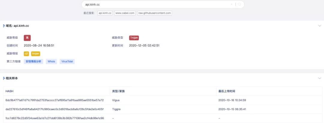 回連域名:自動化提取惡意文件在沙箱中運行時回連的域名和IP,便于威脅驗證和情報孵化;