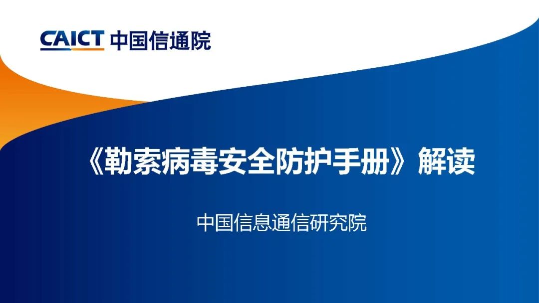中國信通院發布《勒索病毒安全防護手冊》 安恒信息參與編寫