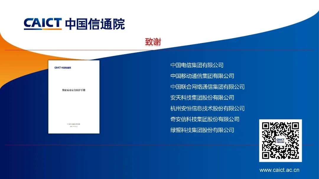 下一步,中國信通院將深刻落實總體國家安全觀,立足底線思維,聚焦勒索病毒等重大網絡攻擊風險防范應對,加強風險研究前瞻布局和應對指導,增強國家網絡安全綜合實力,筑牢適應新時代的網絡安全防線,為數字經濟健康、有序、安全發展保駕護航。