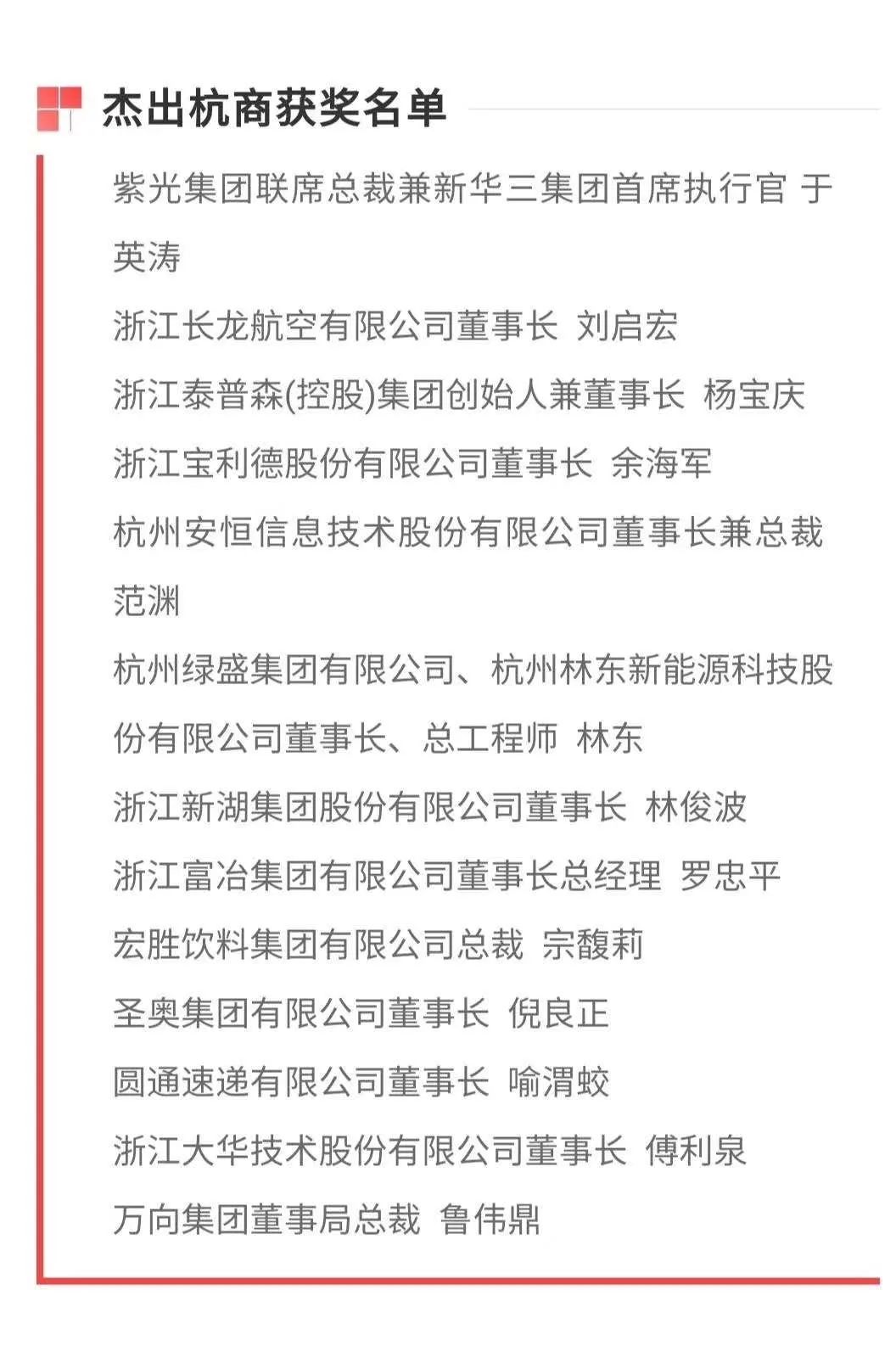 據(jù)悉,“杰出杭商”是由第四屆世界杭商大會(huì)評(píng)選表彰具有代表性的杭商企業(yè)家,彰顯杭商創(chuàng)業(yè)創(chuàng)新成就,展示杭商抗疫復(fù)工、敢于擔(dān)當(dāng)?shù)男嘛L(fēng)采,塑造“創(chuàng)新杭商、開放杭商、智慧杭商、責(zé)任杭商”新形象,經(jīng)過市民參與、專家評(píng)審、組委會(huì)嚴(yán)格審定并且確認(rèn)最終名單。