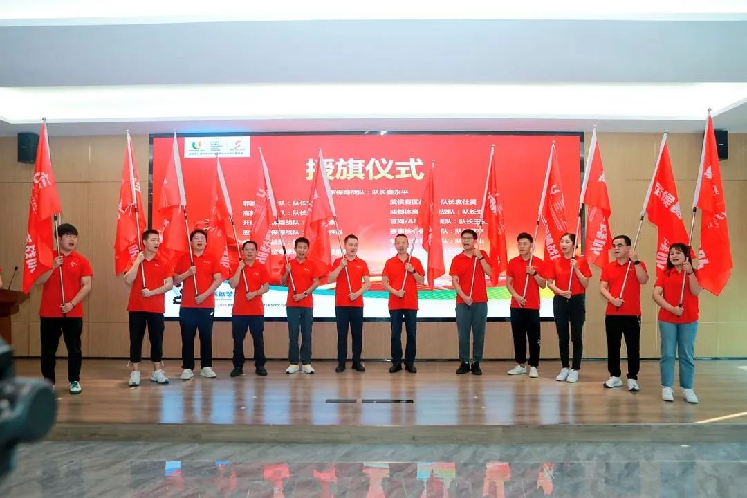 活動現場,在范淵董事長的見證下,公司主要管理層組成的各主要大運會保障團隊負責人簽署了軍令狀,誓保大運會網絡安全運行,為舉行一場成功的大運會全力以赴。當專家保障戰隊、開閉幕式保障戰隊、賽事核心保障戰隊、安全云端專家戰隊等13位隊長一一從安恒信息黨委書記、副董事長張小孟接過戰旗,一同莊嚴宣誓:將牢記使命、不負重托,恪盡職守、堅決捍衛成都大運會網絡安全防線,為成都舉辦一屆簡約、安全、精彩、專業的體育文化盛會貢獻智慧和力量!