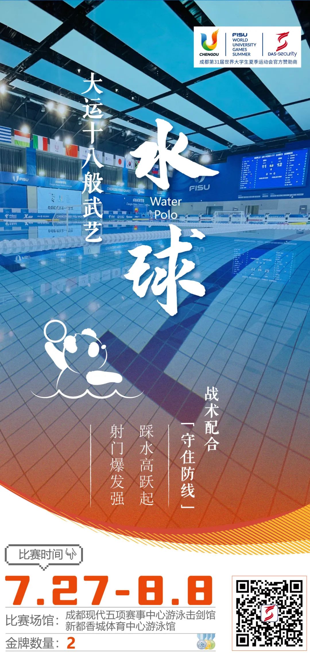 水球(Water polo),又稱為“水上足球”,是一種結合游泳、手球和排球在水中進行的集體球類運動。水球運動講究力量、勇敢和團隊配合,要求參賽的兩支隊伍一面游泳,一面搶球,設法將球射入對方球門得分。在本屆成都大運會水球項目,由熊敦瀚、翟穎領銜中國女子水球隊斬獲金牌。