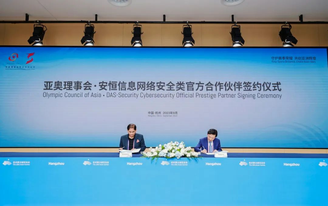 9月19日,亞洲奧林匹克理事會(以下簡稱亞奧理事會)與安恒信息在杭州亞運會主媒體中心(MMC)完成簽約,安恒信息正式成為亞奧理事會網(wǎng)絡(luò)安全類官方合作伙伴。