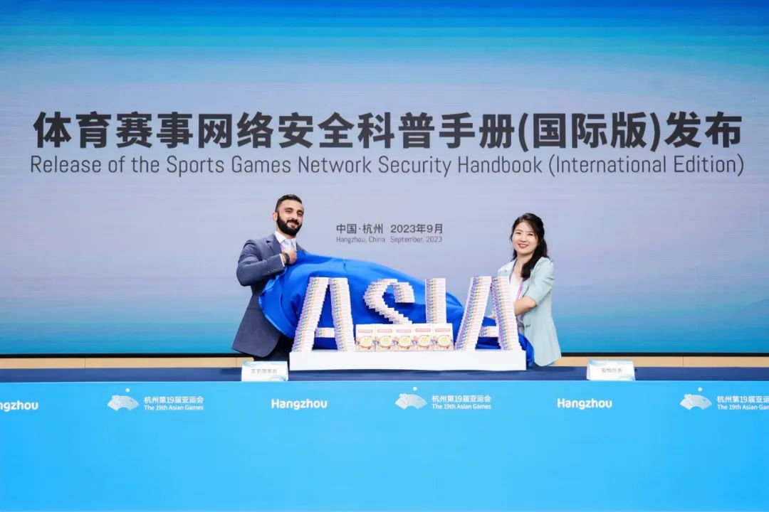 會上,《體育賽事網(wǎng)絡(luò)安全科普手冊(國際版)》首次發(fā)布,在杭州亞運會即將到來之際,為每一位運動員、工作人員和觀賽觀眾普及網(wǎng)絡(luò)安全知識、提升自我保護能力,保障杭州亞運會及其他亞洲體育賽事精彩、安全舉辦。亞奧理事會項目運營主管維薩姆·特卡馬尼和安恒信息高級副總裁段平霞共同進行了發(fā)布。