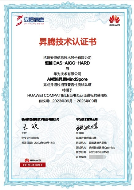 安恒恒腦獲昇騰技術(shù)認證,大模型一體機已完成適配