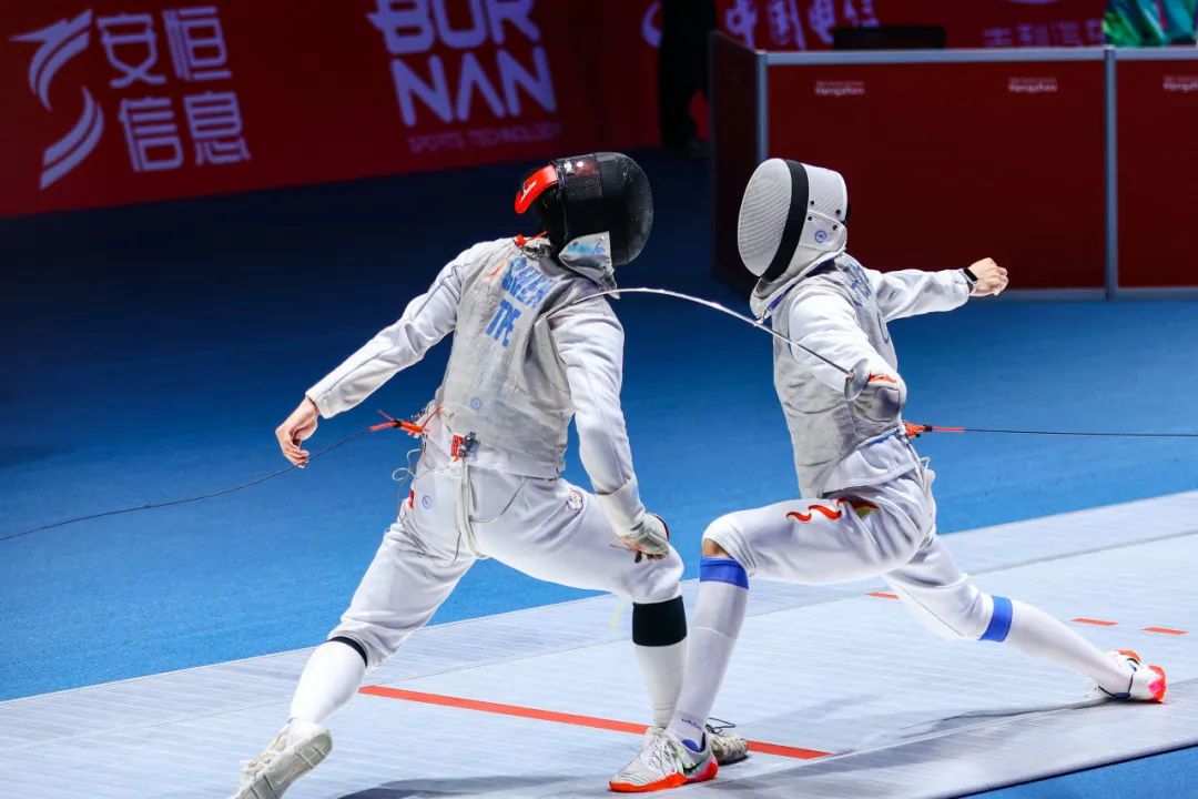 杭州亞運會擊劍比賽賽程從9月24日持續至9月29日,在杭州電子科技大學擊劍館舉行,分設男子、女子個人和團體賽,共產生12枚金牌。“安恒”元素分布在場館的角角落落,你發現了嗎?