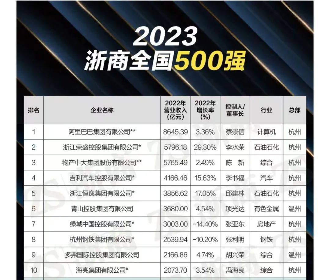 日前,浙商雜志正式發布“2023浙商全國500強”榜單。登榜的500家企業合計創造了12.41萬億元的總營收。