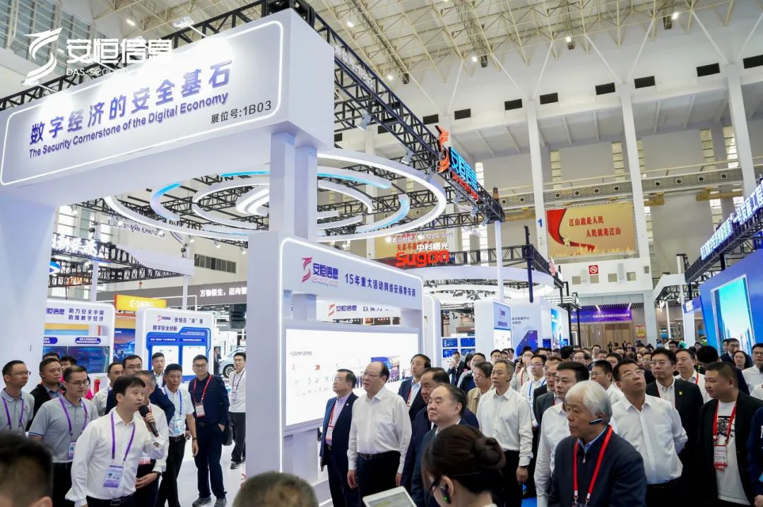大會期間,中國工程院原院長周濟,工信部原副部長、中國電子信息行業聯合會會長陳肇雄,浙江省委常委、寧波市委書記彭佳學,寧波市委副書記、市長湯飛帆等領導一行蒞臨展位,聆聽安恒信息在數字安全領域的相關成果介紹。