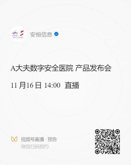 11月8日,由中國網絡空間安全協會主持的新產品新技術在烏鎮互聯網國際會展中心成功舉辦。會上,安恒信息正式發布“A大夫數字安全醫院”全新產品。