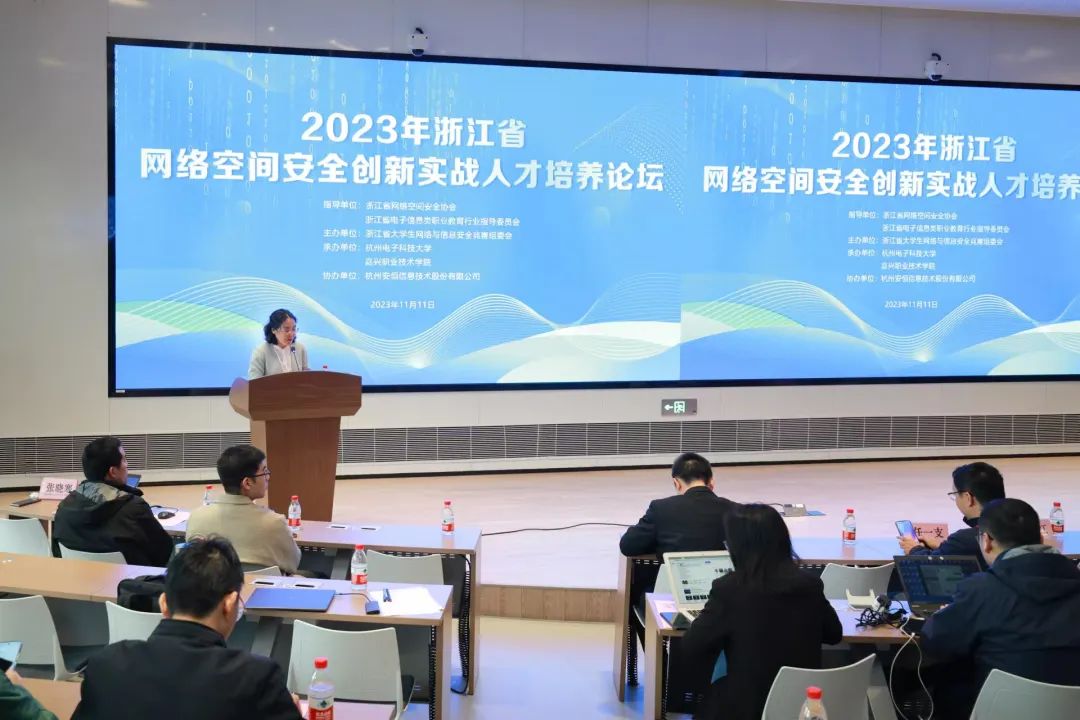為了進一步加快推進全省網絡安全人才實戰化培養,構建多元化人才培養體系,本屆大賽同期舉辦了首屆浙江省網絡空間安全創新實戰人才培養論壇,邀請了浙江省公安廳、知名高校、優秀網信企業等眾多網絡安全領域的專家、學者,圍繞高質量創新實戰網絡空間安全人才培養、課程建設、課程思政、產學研協同育人等主題,開展了深入的交流與研討,共同為網絡安全實戰人才培養獻計獻策。