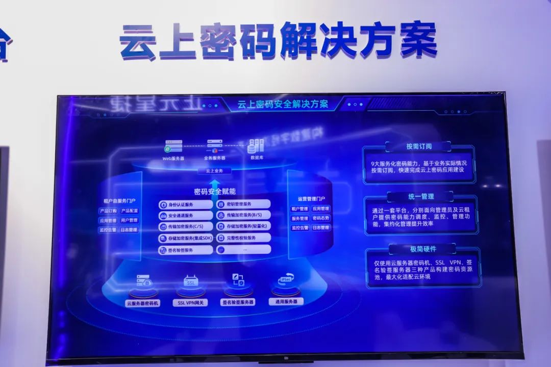 現場,安恒信息展示了密碼應用安全監管平臺、云上密碼解決方案、透明加密方案、密評工具箱等商用密碼產品與解決方案,集中展示了安恒信息在商用密碼應用建設與監管的科技成果。