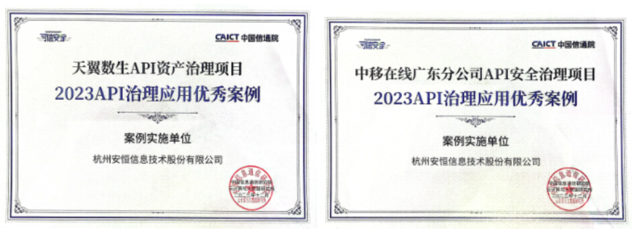 安恒信息兩大應用案例榮獲2023年API治理應用優秀案例獎項