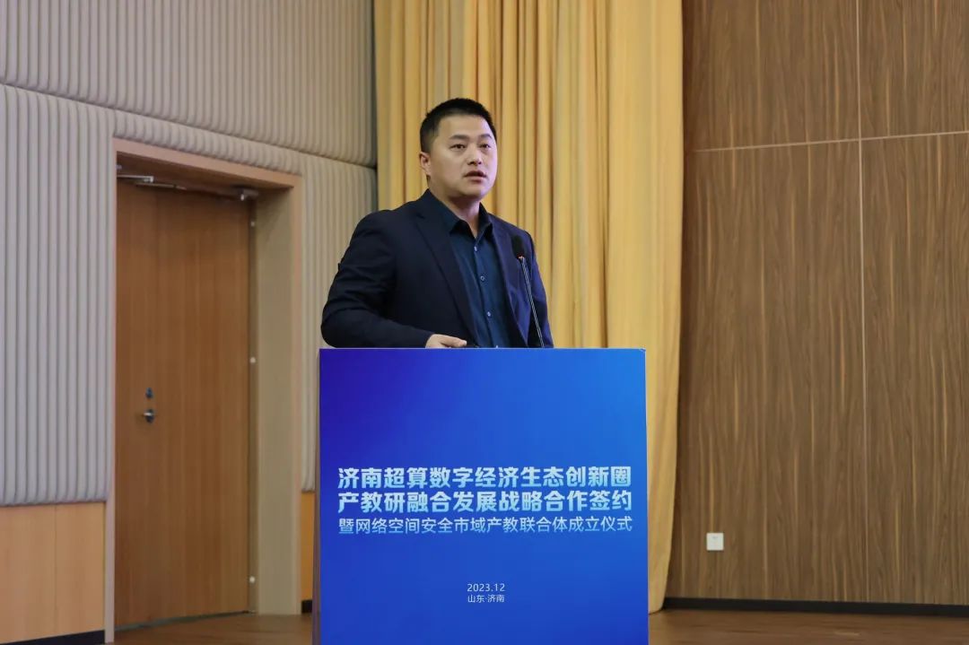 12月23日,“濟南超算數字經濟生態創新圈產教研融合發展戰略合作簽約暨濟南市網絡空間安全市域產教聯合體成立儀式”成功召開。此次大會由中共濟南市歷城區委、歷城區政府指導,安恒信息、山東高等技術研究院、齊魯工業大學(山東省科學院)、泉城實驗室為聯合單位,濟南臨港經濟開發區管委會、山東商業職業技術學院、濟南歷城控股集團有限公司主辦,來自政府、科研機構、院校及企業等200余人參會。安恒信息高級副總裁蘆健出席簽約現場,并代表安恒信息簽署網絡空間安全市域產教融合體合作協議。