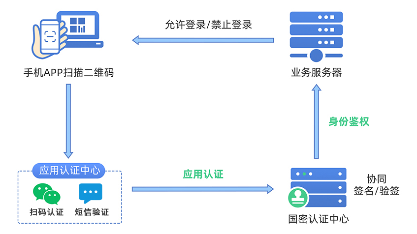 支持短信或掃碼結合協同簽名的身份認證、支持基于USBKEY的數字證書身份認證